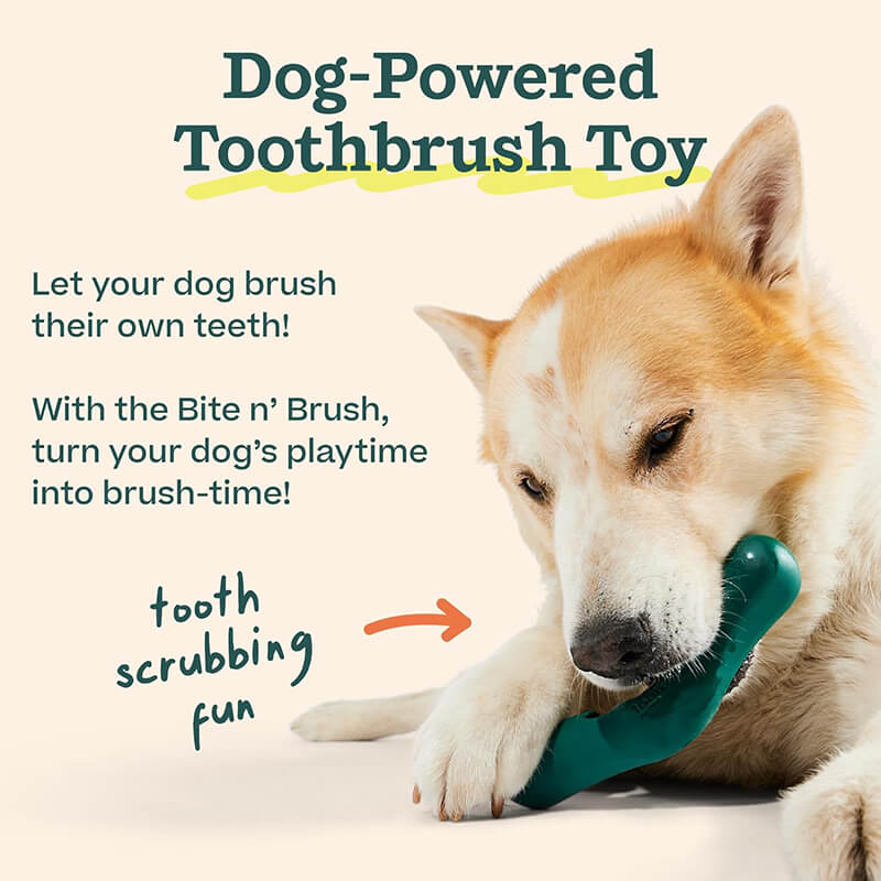 You brush your teeth, now your dog can brush theirs! The Bite n’ Brush turns chewing into brushing with every bite!