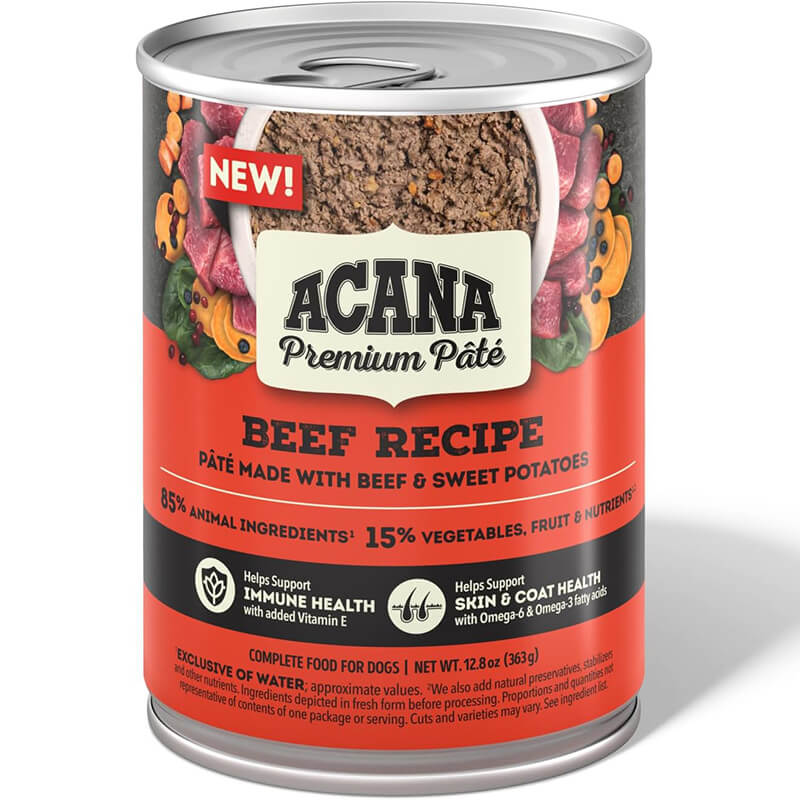 Treat your furry friend to the nourishing and hydrating goodness of ACANA Premium Adult High-Protein Beef Recipe in Bone Broth Pate Wet Dog Food. This premium wet food is packed with benefits in every bite. With a smooth and easy-to-eat texture, your pup will devour every last morsel—especially since it’s made with delicious bone broth. ACANA carefully selects every ingredient that goes into their recipes, and this wet food is no exception. It’s crafted with protein-rich beef and nutritious fruits and vegetables like sweet potatoes and carrots. Give your pup the ultimate mealtime experience by serving ACANA Premium Pate on its own or as a tasty topper on their favorite dry food (sold separately). With this premium food, your pet will feel good inside and out!