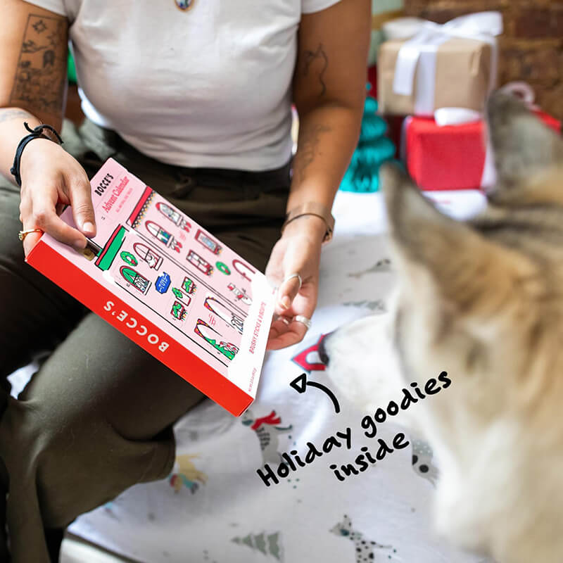 The Bocce's Bakery Holiday Dog Treats - 12 Day Advent Calendar is filled with a surprising Medium Brushy Sticks or Nutcracker Crunch Biscuit! Enjoy counting down to Christmas with your furry friend. Check out other Bocce's Bakery treats and full size bags of the Medium Brushy Sticks or Nutcracker Crunch if your dogs loves the treats!