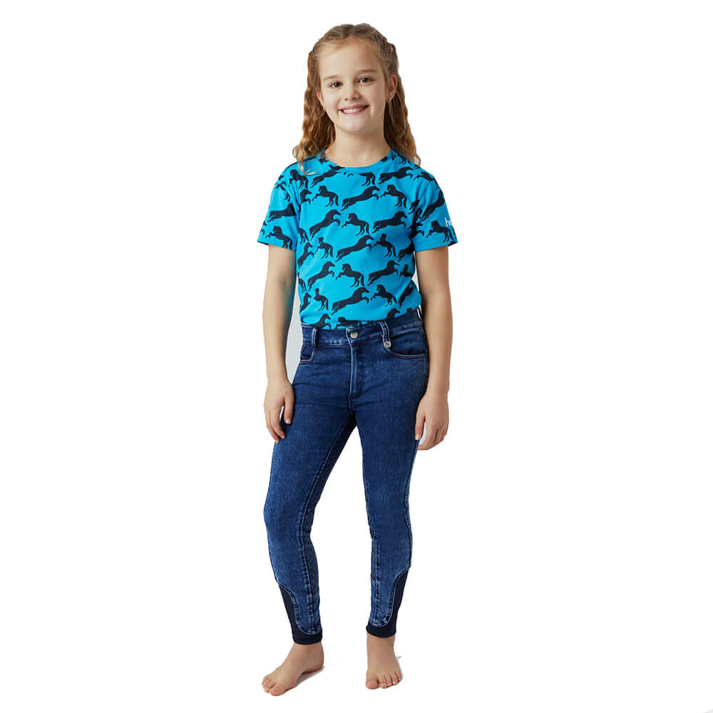 The Horze Micky shirt is perfect for young riders. Soft material and a simple cut make it comfortable for everyday riding or days in the stables. The allover horse print adds fun to little riders' wardrobes. It can easily be combined with their favorite breeches and jackets.
