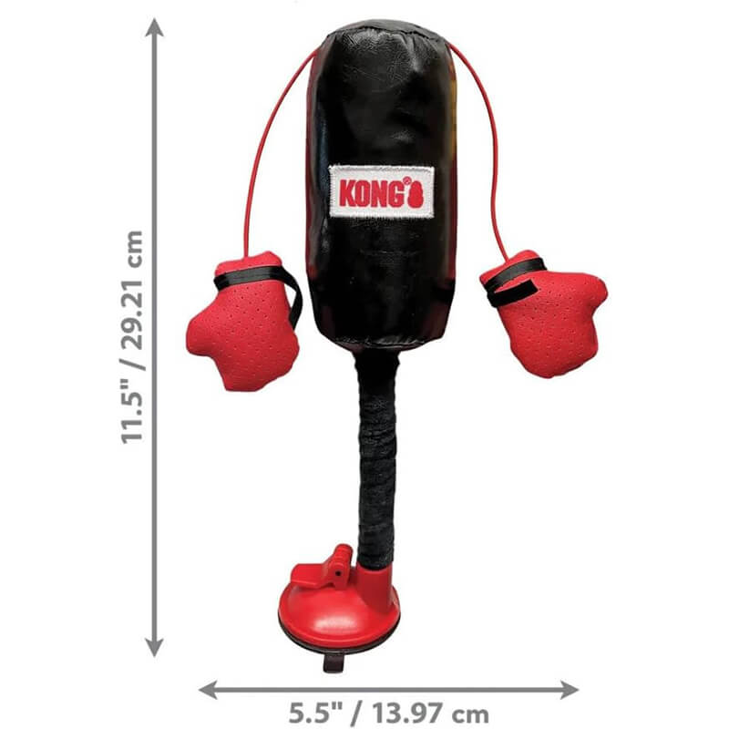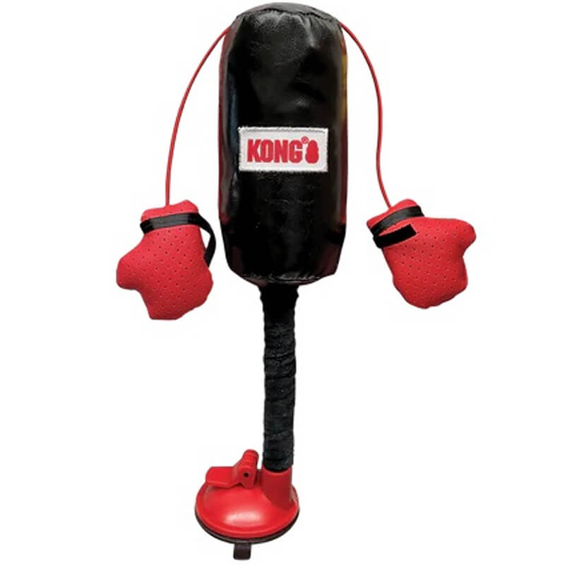 KONG Connects Punching Bag is a portable play gym that knocks out boredom with a multi-sensory prize fight of fun for Kittyweight Champions of the World. Secure the base onto any smooth surface with the locking suction cup and the spring-loaded punching bag bobs an irresistible invitation with dangling boxing gloves that attract the eye of the (small) tiger to bat and grab. KONG Premium North American Catnip in gloves fuels extra rounds of fun, while bells and crinkles spark hunting instincts.