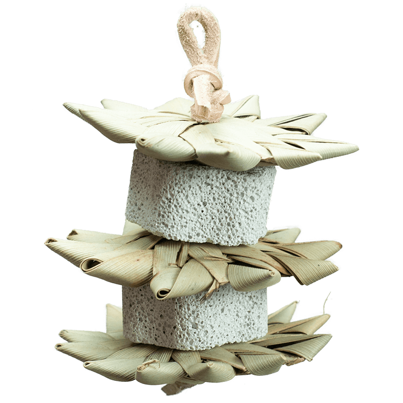 - This chew toy features 3 palm stars with pumice marshmallows in-between and hanging from rope