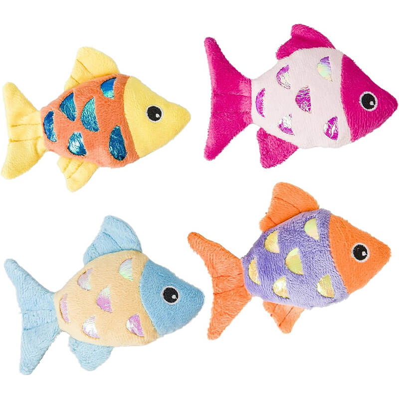 Simply adorable brightly colored plush with irresistible shimmering accents. Cats will love to bite, pounce and bat this toy all around. Catnip inside for a euphoric play time!